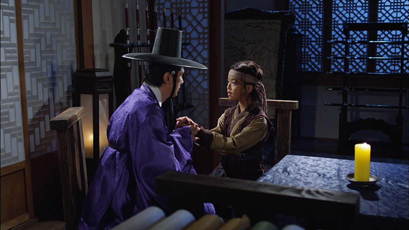 一方、父親を亡くし悲しむ間もなくクァンヒョンは兵に追われ崖っぷちで矢を受け海に落ちてしまう。