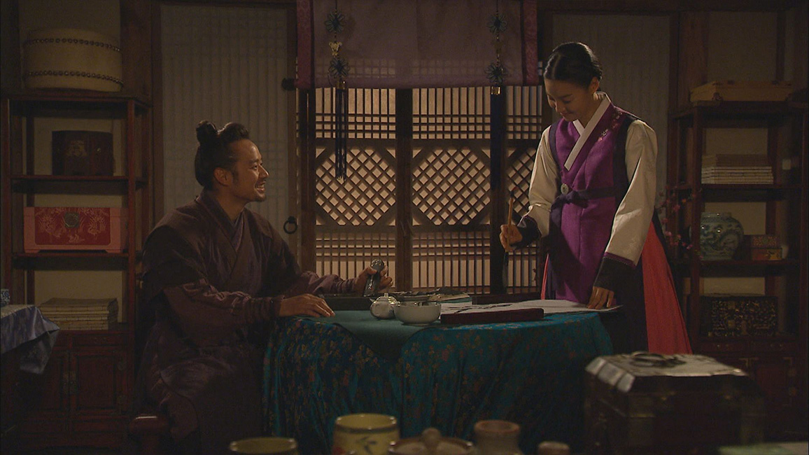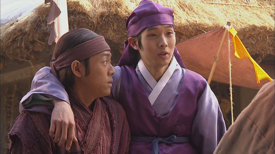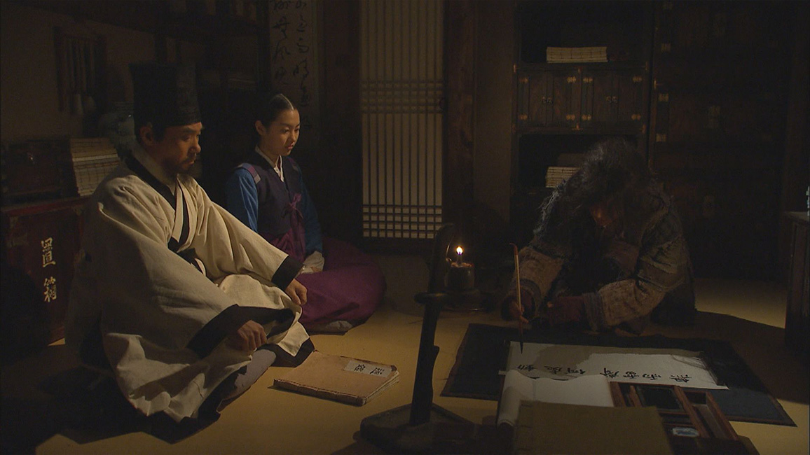 ギドンがダリとの狩りから白丁の村へ戻ると、狩りを教えてくれた男が役人たちを相手に争っているところに遭遇する。見ていられず止めに入ったギドンは、父と叔父の名を出して役人たちを下がらせる。一方、セドルから本をもらったチョンドゥンは、その内容について教えを請うため書堂の先生ソンの元を訪ねる。そこでソンに文才を認められ弟子の印として筆と硯を譲り受け、大喜びする。