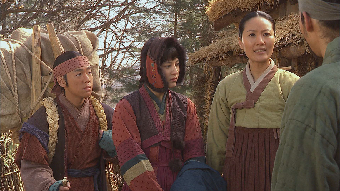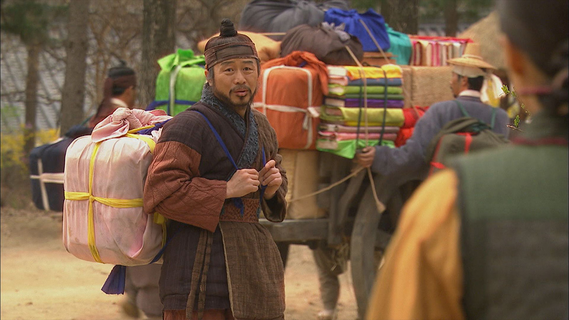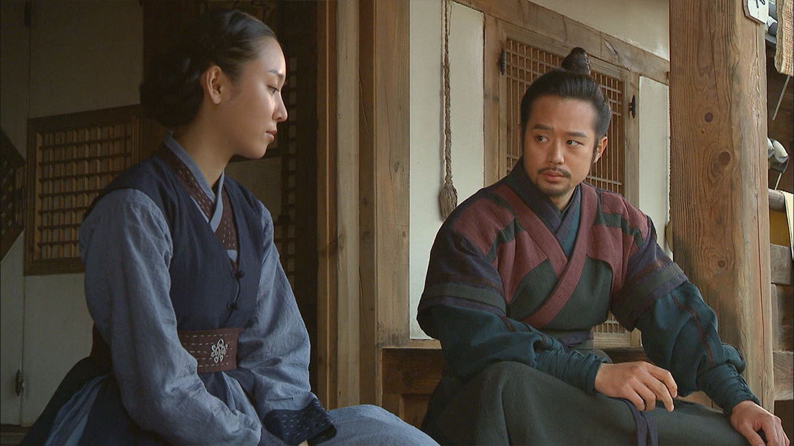 父ソンの石碑を建てるために故郷を訪れ、過去を振り返るドンニョ。キム大監に以前の発言の意図を尋ねるが、身寄りのないチョンドゥンと結ばれたらいいと思っていたと言われて複雑な心境になる。チョンドゥンが清国に行くという話に乗ったチャン親分は、一足先に別れを告げて出ていく。旅立つ準備を終えたチョンドゥンを訪ねたギドンは、マクスンに挨拶に行ったかと聞く。