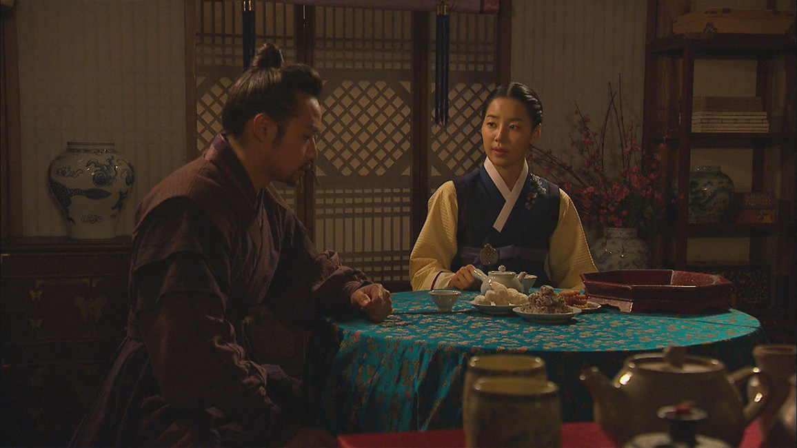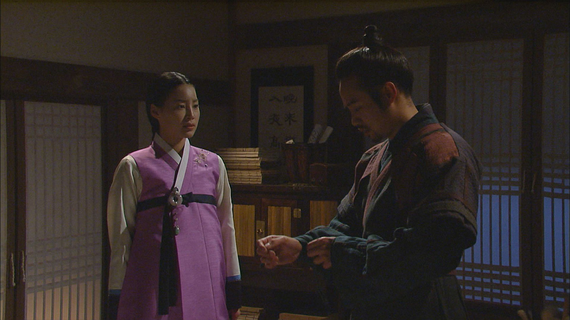 尋問していた倉庫番を従事官の命令で釈放したことに納得できないギドンは、酒を飲もうとチョンドゥンを訪ねる。しかし留守のためドンニョと酒を酌み交わす。ギドンとチョンドゥンは互いにドンニョへの想いを知り、身を引こうとしていた。旅芸人を見に行ったグムオクは、チョンドゥンと共にいるダリを見て嫉妬し、ギドンは従事官を疑う上書を書こうとするがコンに止められる。