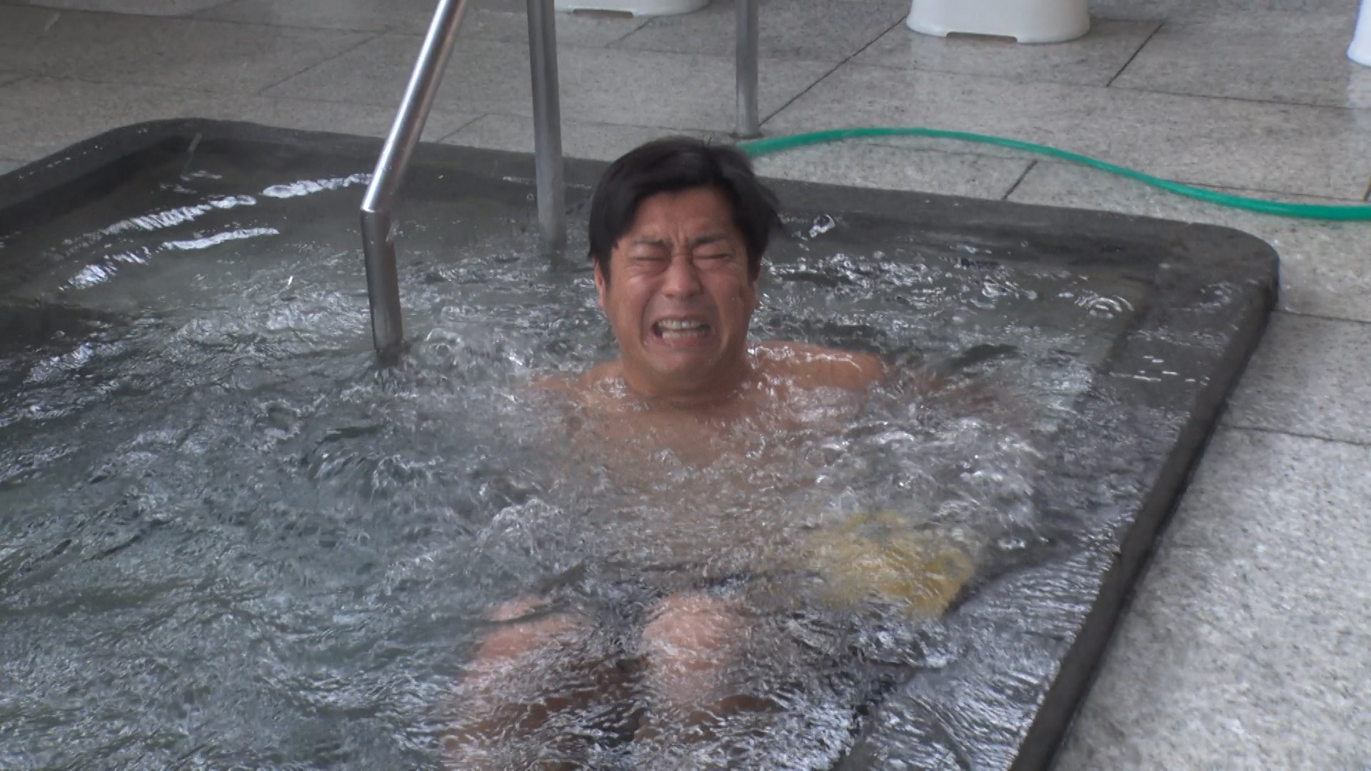 ▼お笑い芸人も驚く熱湯風呂に挑む!