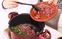 - 一口大に切った牛もも肉を入れる