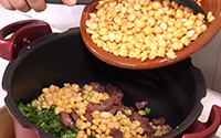- 水に浸しておいたレンズ豆を入れる