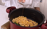 - 水で戻し茹でたひよこ豆を入れる