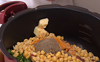 - 塩・ジンジャーパウダー・ターメリック・コショウ・バターを入れる