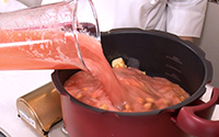 - ミキサーにかけたトマトを入れる