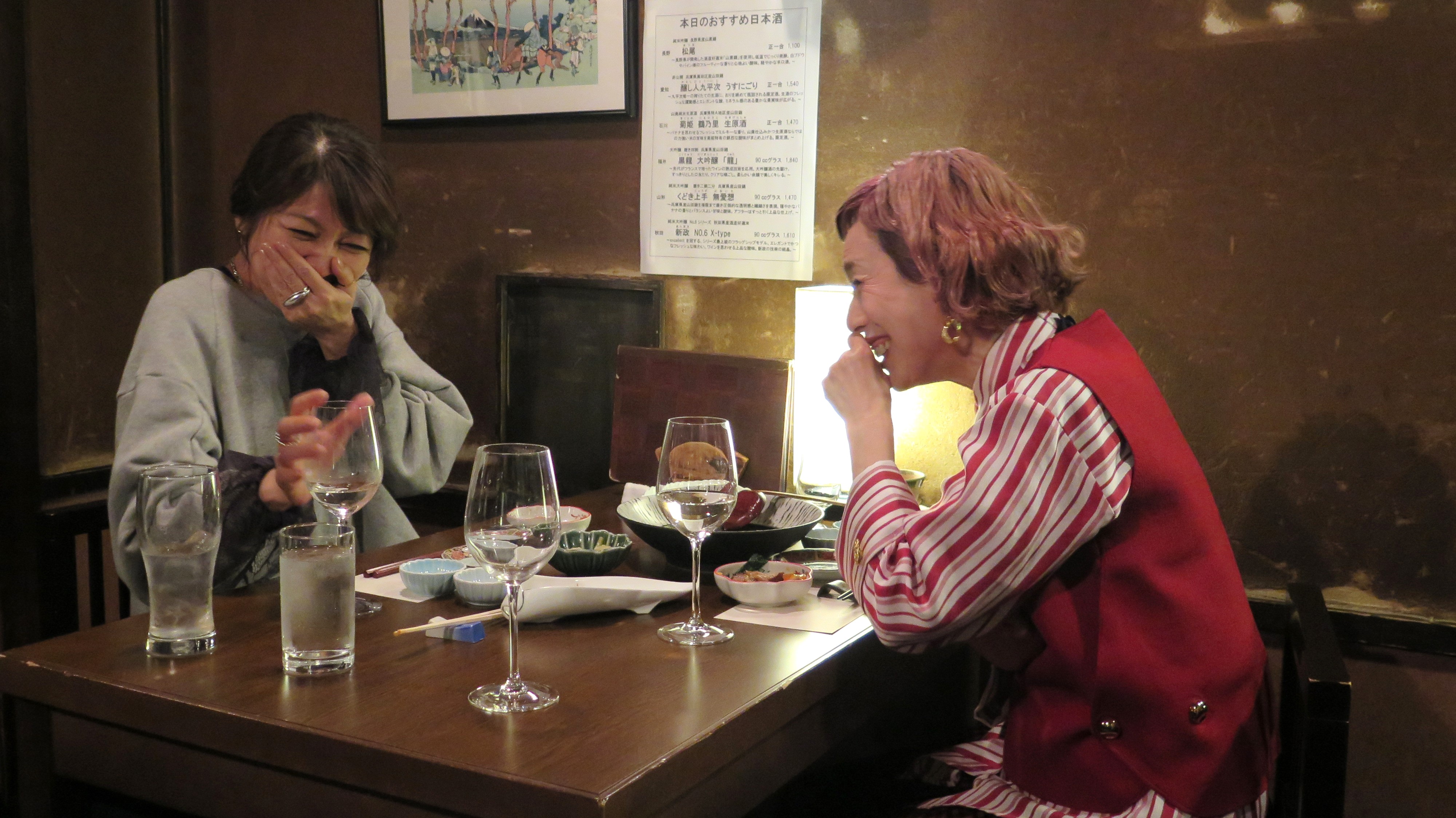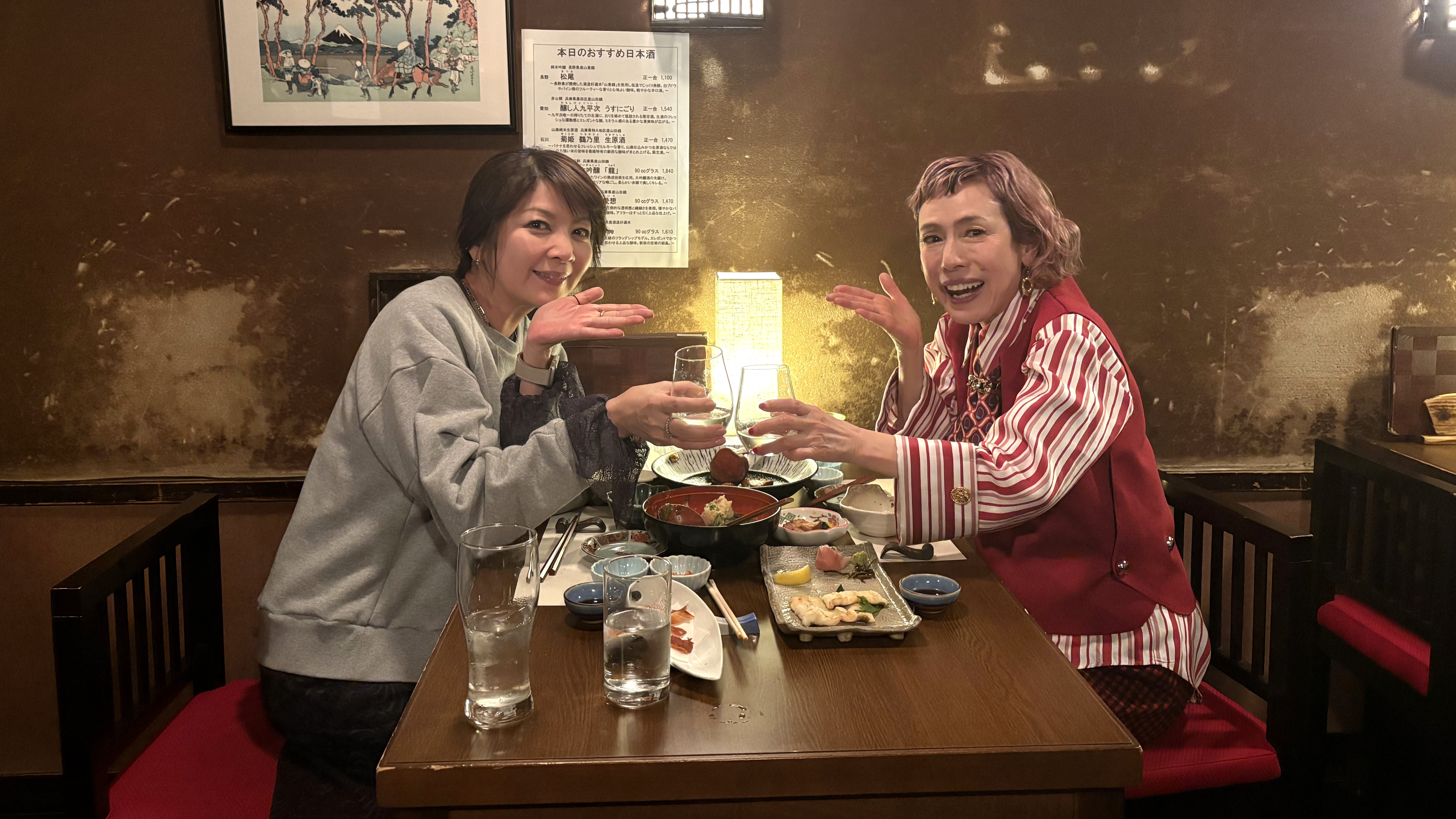 乾杯のお相手は、飯島がデビュー当時からバラエティー番組でお世話になっている久本雅美さん。