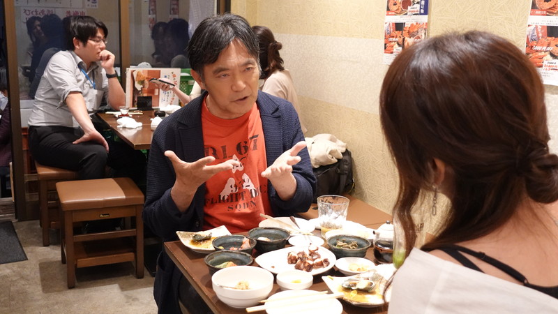 2軒目は朗読舞台で共演した渡辺いっけいをゲストに招き、海鮮居酒屋さんで新鮮な魚介をつまみにサシ飲み。