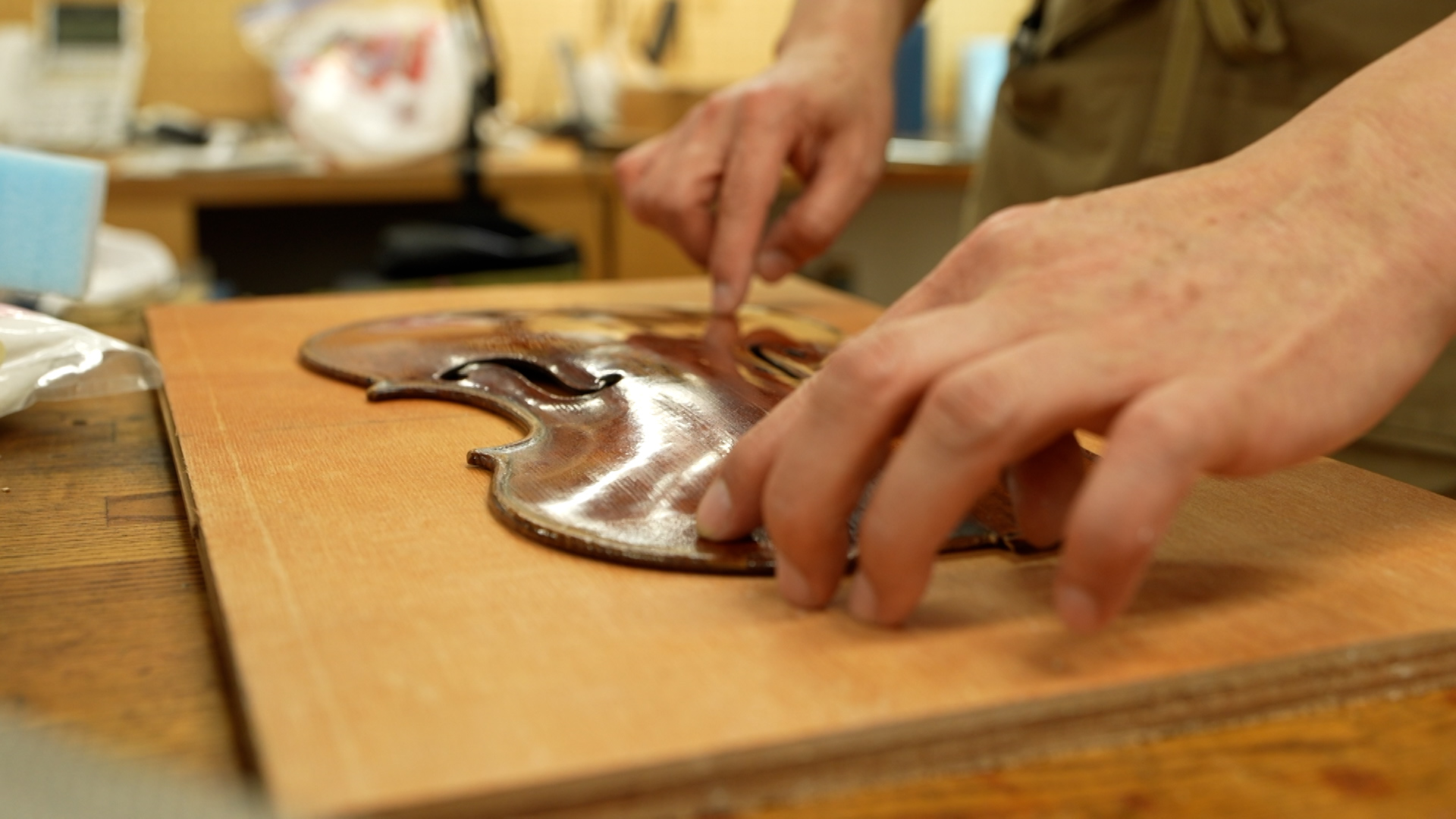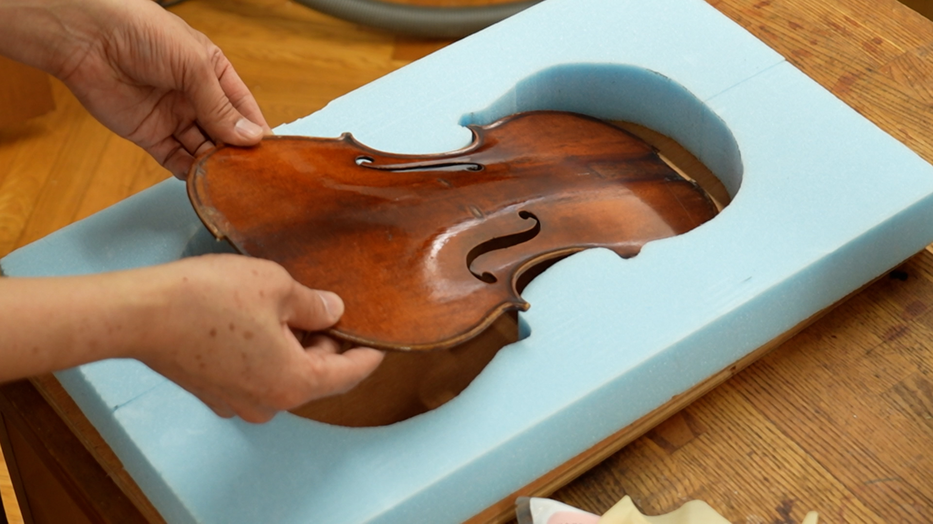2つ目は、長年の使用で沈んでいた表板のアーチ修正。