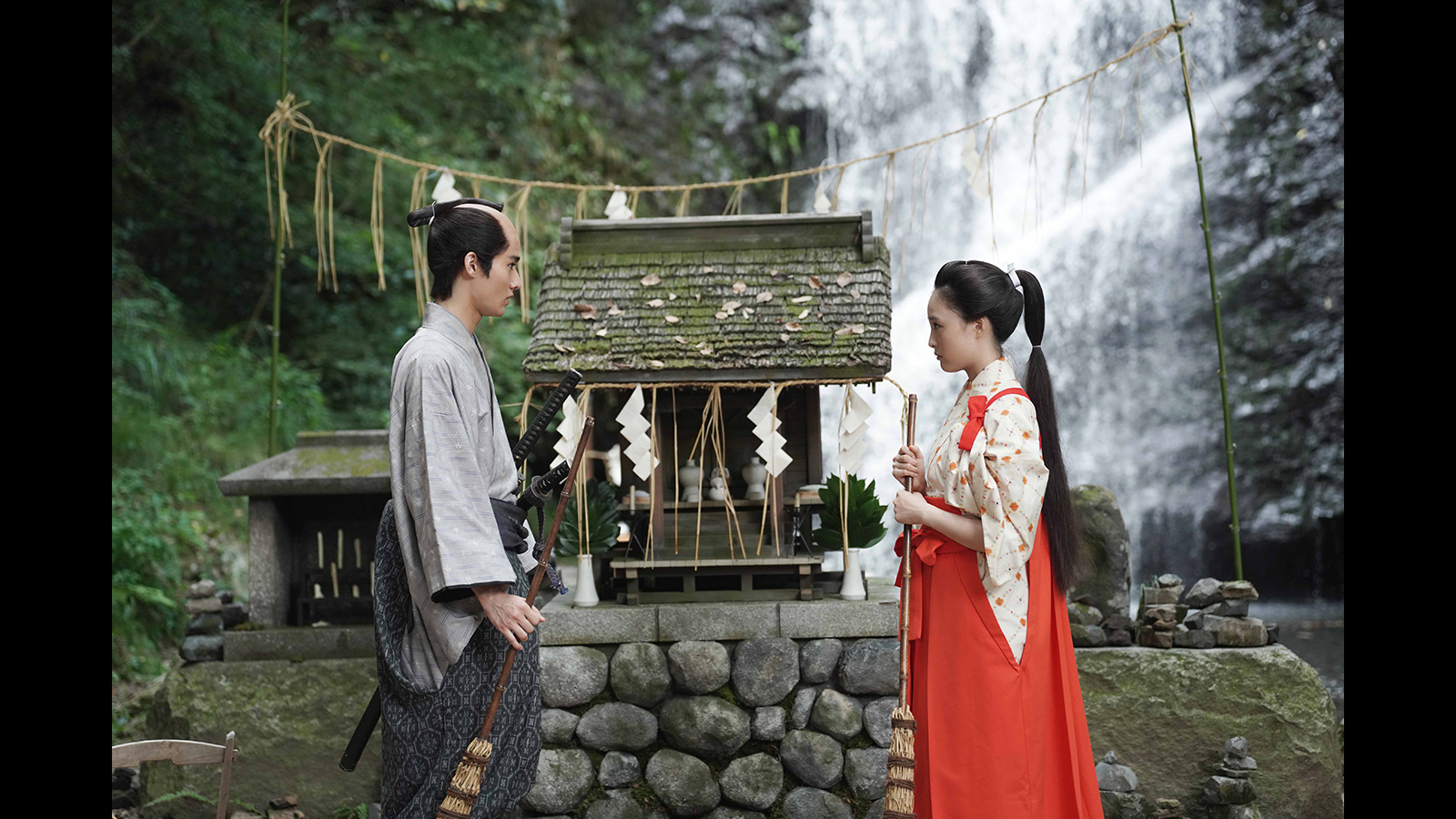 清左衛門と山道を歩く途中で信次郎は、小さな社で祈りを捧げる巫女・照日(大友花恋)に心を奪われる。