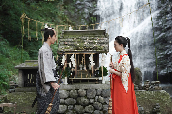 清左衛門と山道を歩く途中で信次郎は、小さな社で祈りを捧げる巫女・照日(大友花恋)に心を奪われる。