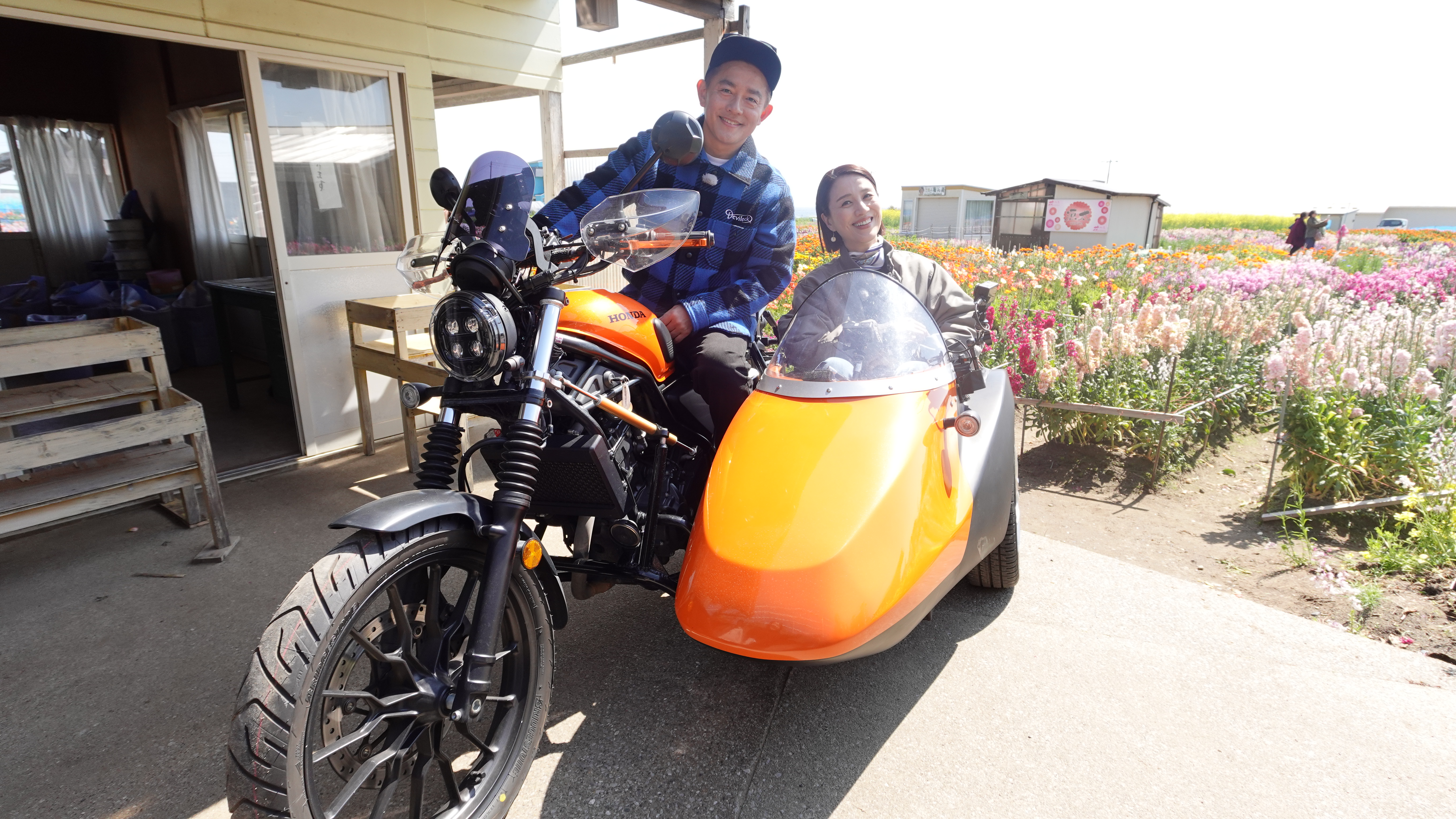 サイドカーならではの開放感と、風景や会話を共有する“距離の近さ”が生む、2人の飾らない素顔にも注目。