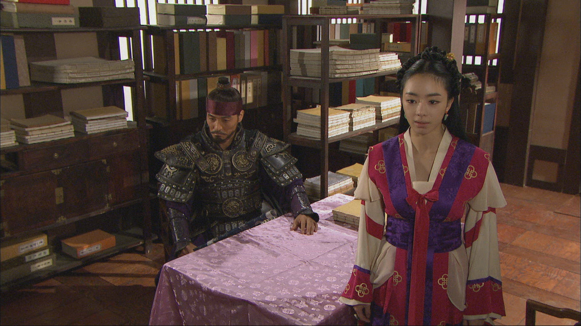 ソルランが偽の王女であることが暴露され、休戦交渉において窮地に立たされる武寧(ムリョン)王。