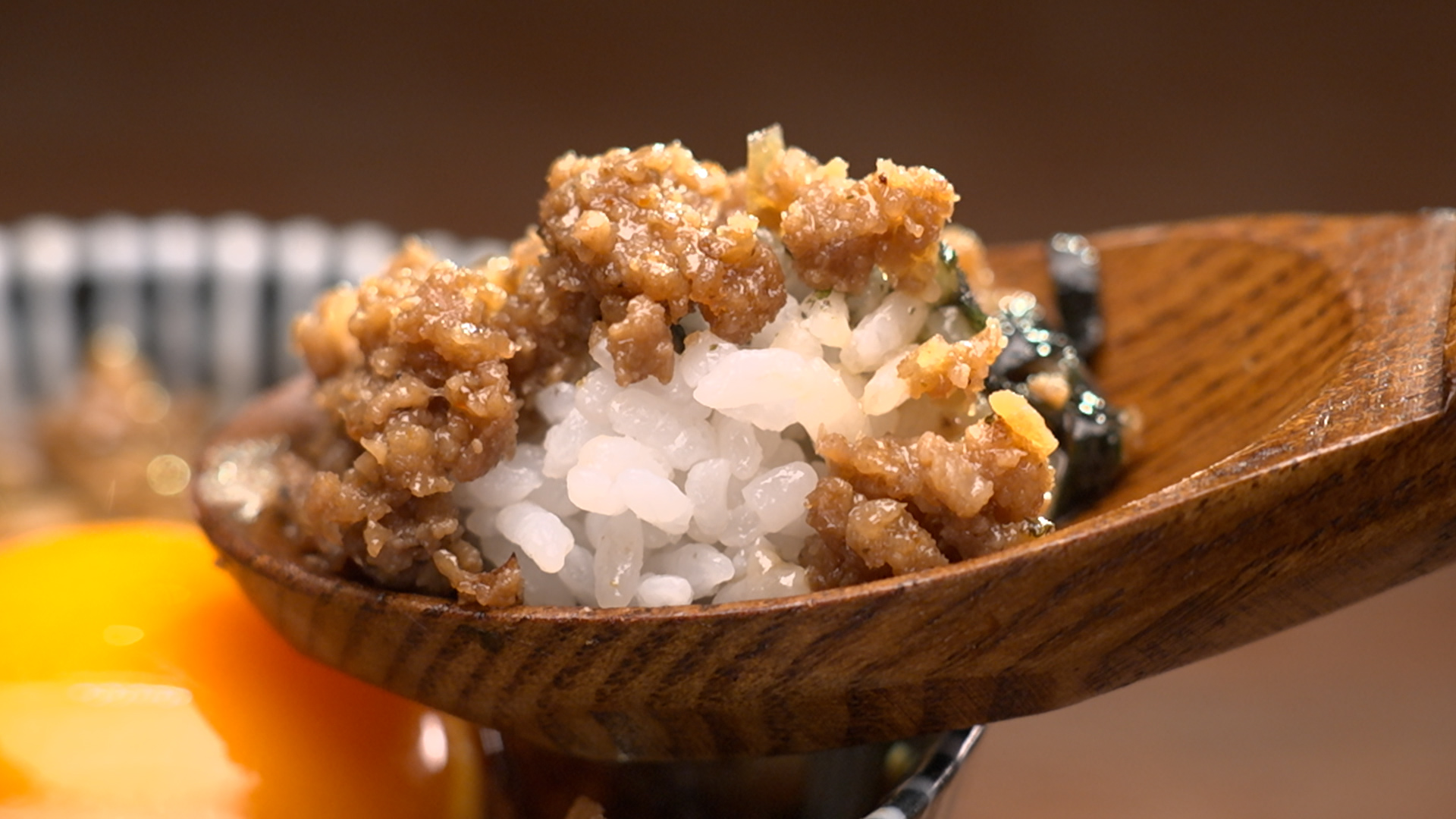 鶏・豚・牛の挽き肉に秘伝のタレを絡めた旨みたっぷりの一杯。