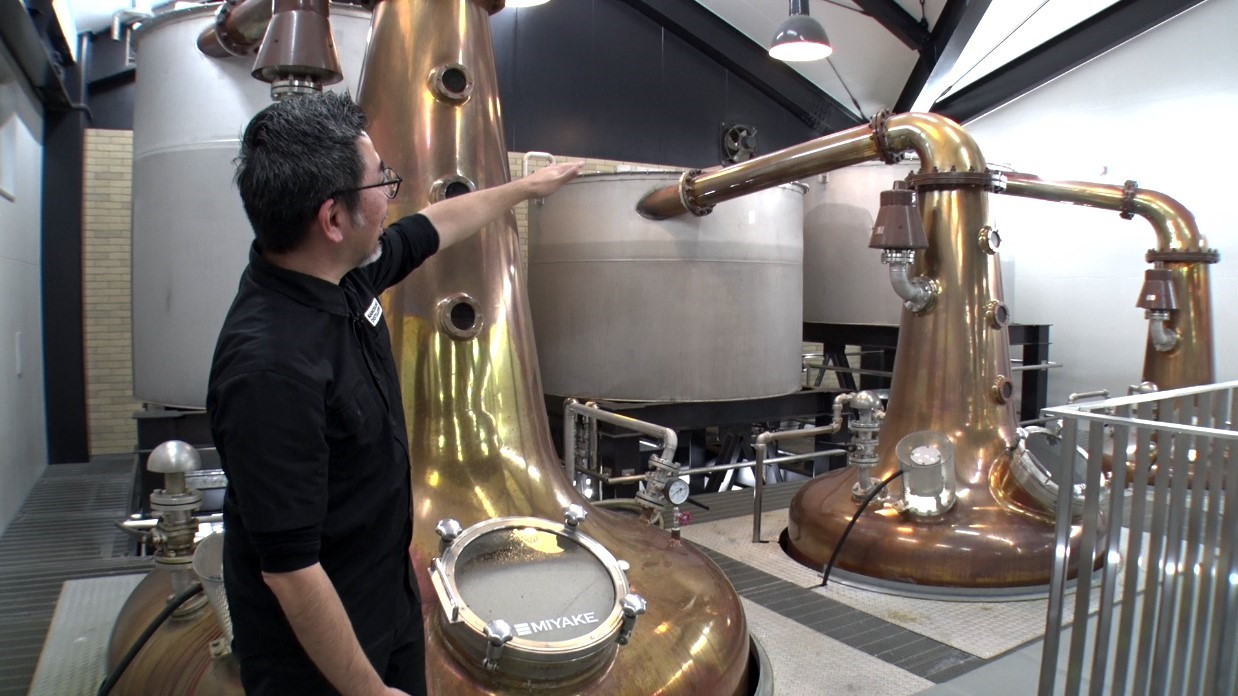 英国産アンピーテッドモルトを使用し、約100時間の長時間発酵、3基の蒸留器を生かした嘉之助ならではの製造工程を紹介。
