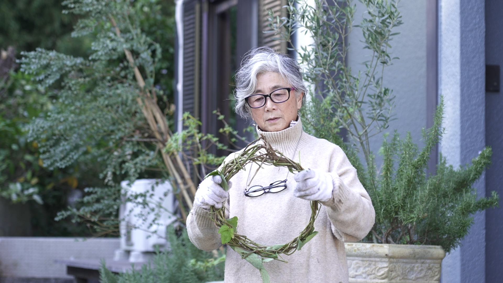 そのわけは、一日がかりで広い庭の手入れをするため。庭木の剪定や草刈りをしているうちに、指の関節が太くなって、今では指輪が入らなくなるほど。